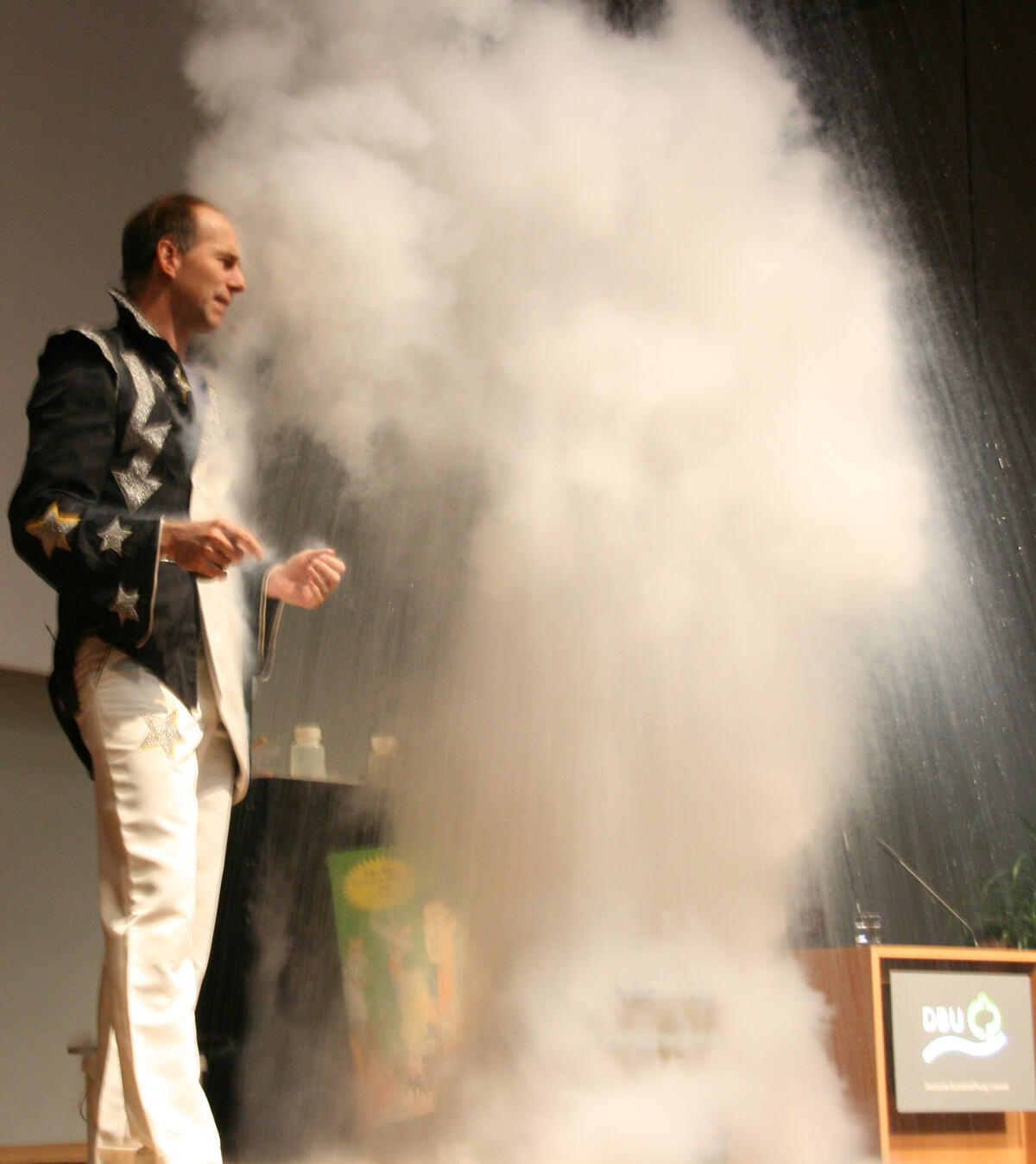 Nicht nur für die Ohren, sondern auch für die Augen der Besucher gab es bei der Eröffnungsfeier viel zu entdecken: Der Chemiker und Unterhalter Dr. Andreas Korn-Müller alias „Magic Andy“ führte mit seiner effektvollen Wissenschaftsshow unterhaltsame Phänomene der Chemie vor. In seiner Show verband er Comedy mit Wissenschaft.
